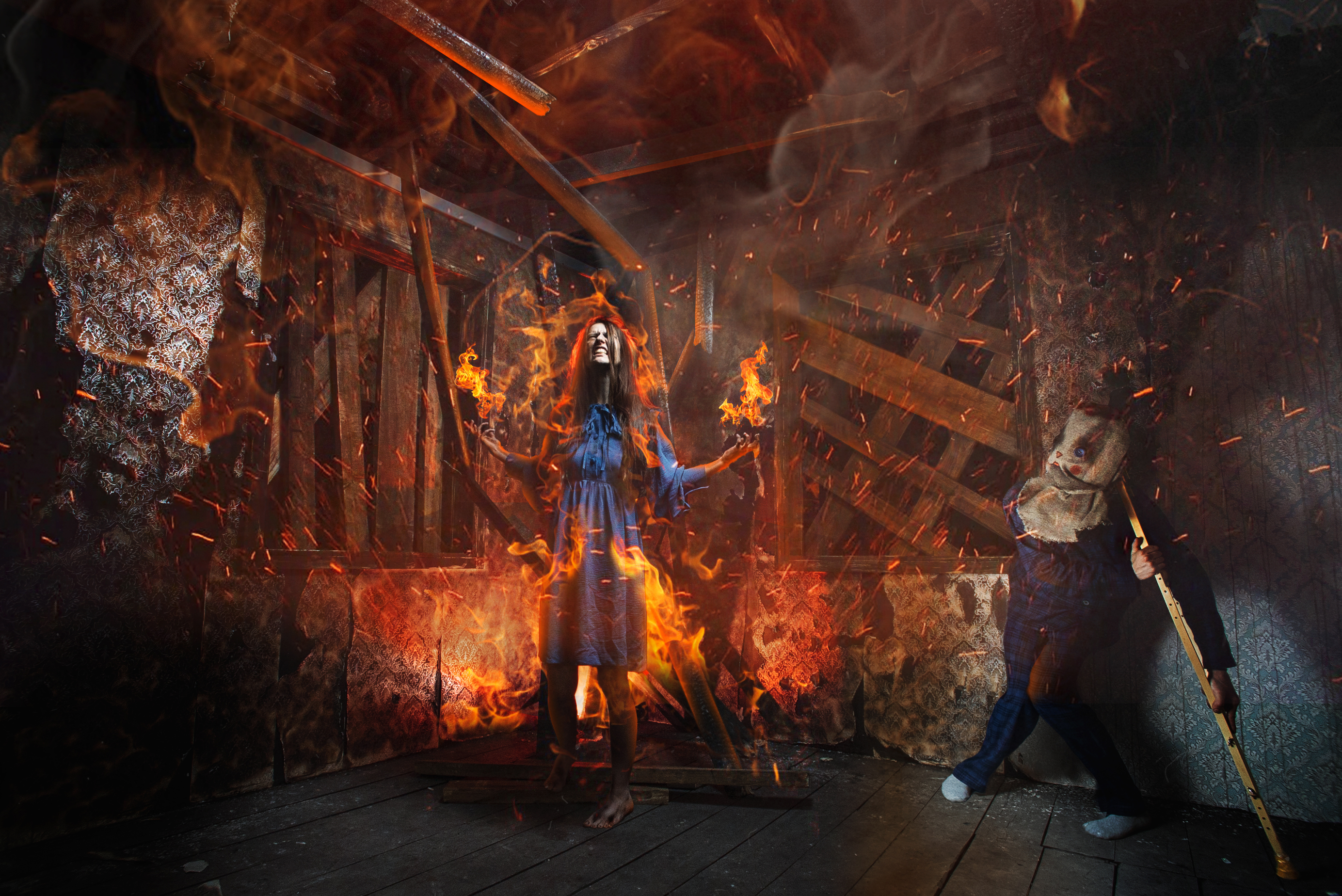 – (задыхаясь, на фоне трескающегося огня) В приюте пожар! Я… я вижу дым в коридоре, двери горят… Дети… я не могу дойти до них!