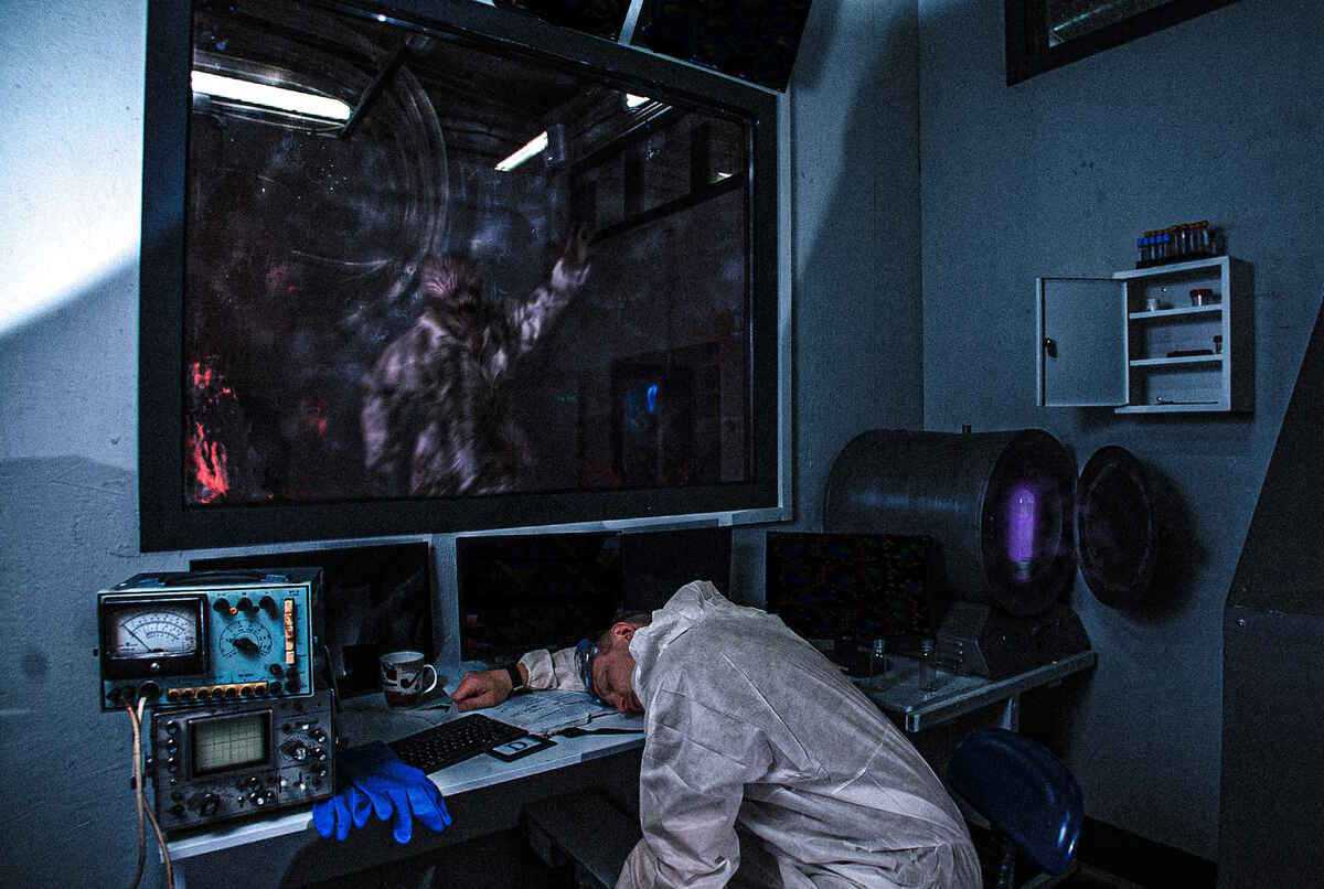 После понимания, что вы здесь закрыты и необходимо выбраться, вы начнете искать необходимые подсказки и загадки, которые вам в этом помогут и сделаете это достаточно быстро, что нельзя сказать о решении этих задач. Они выглядят так натурально, что может сложиться ощущение, как будто это и правда писал человек, работающий здесь, для иных сотрудников, коими мы не являемся. Поэтому залезть в голову к настоящим учёным и понять смысл написанного бывает достаточно сложно, а иногда интуитивно понятно. Вам может помочь сталкер, который привёл вас внутрь, но при этом не оставил на верную гибель с экспериментами, которые всё ещё ходят по помещениям лаборатории. Общение с ним не будет стандартным для большинства квестов (с помощью голоса сверху и тому подобного). Вас будут звать и общаться лично, если потребуется какая-то помощь, что придаёт проекту ещё больше реализма. Даже появление более простого способа общения где-то в середине прохождения не выбивает, а грамотно вписано в сюжетную канву. Хоть и в ходе решения одной из загадок немного замедлило нас из-за частых расспросов о наших действиях.